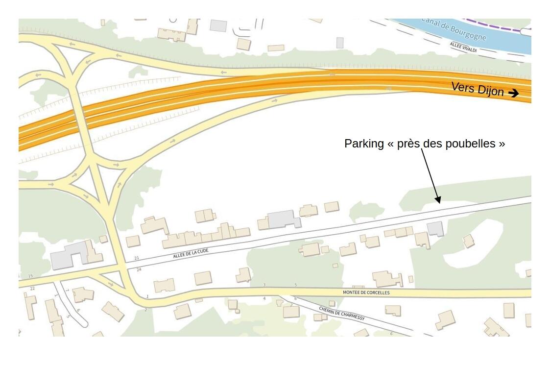 Rendez vous au parking habituel allée de la Cude à Velars sur Ouche vers le local poubelles pour un départ à 8 h00.